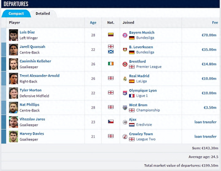 莫顿以1000万欧加500万欧浮动的转会费加盟里昂,利物浦还有球员20%二转分成。加上迪亚斯、宽萨等人,利物浦今夏出售球员收入已达1.433亿欧。此外,努涅斯、基耶萨、埃利奥特等人也可能今夏离队。