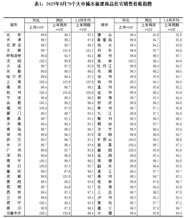 八月房价数据勾勒出一幅清晰的房地产市场全景图。国家统计局数据显示,70个大中城市中,新房价格环比下跌的城市达到57个,虽然较7月减少了3个,但市场整体仍处于下行通道。
